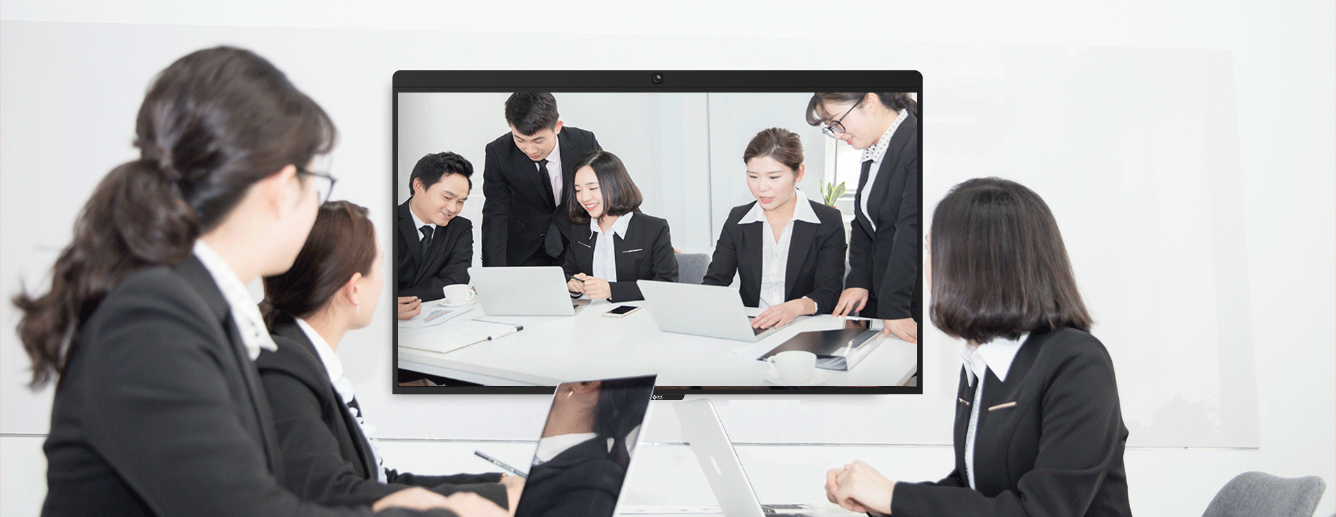 将投影仪、触控电视、协作白板、摄像机、麦克风、扬声器等设备功能高度集成于一体。 无需会前繁杂准备,一键开机,即可开始会议。