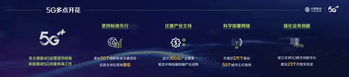 进入5G时代,中国移动充分借鉴4G运营成功经验,在全球合作伙伴的积极响应和大力支持下,深入实施“5G+”计划,统筹规划、周密部署、积极推动5G发展各项工作。